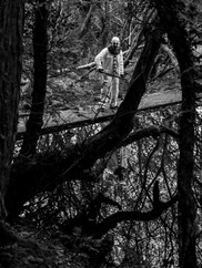 For the location shoot I was fortunate to be working with my male model Kayvan. We went with a clown theme seeing I.T. had the big comeback not too long ago. The overall brief that I set myself was that often the scariest thing is that you see out of the corner of your eye. So Kayvan being off in the distance or partially hidden or partially hiding myself. Some photos he is at top frame or side frame. We went to a lake which had woods around it not too far away from me. As a creepy clown in a creepy woods worked well for me. We were out there for maybe 2 half hours took a good variety of shots, Jo helped massively as an assistant. Then as it got dimmer I got to use a bit of flash which I haven't really used that much since buying and got some much needed practice with it.